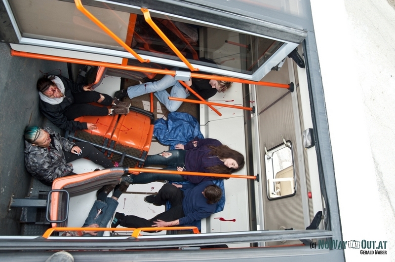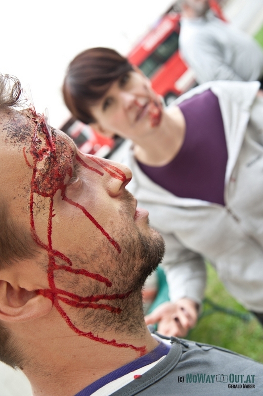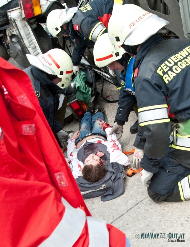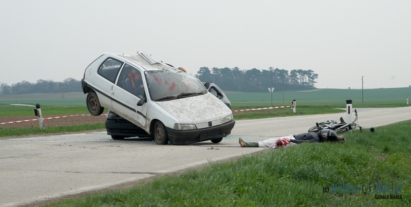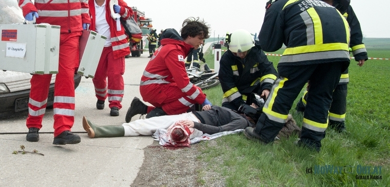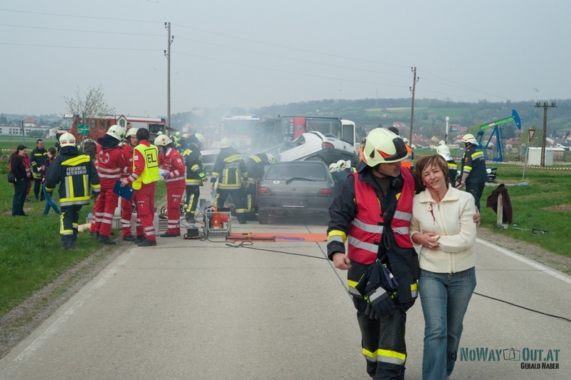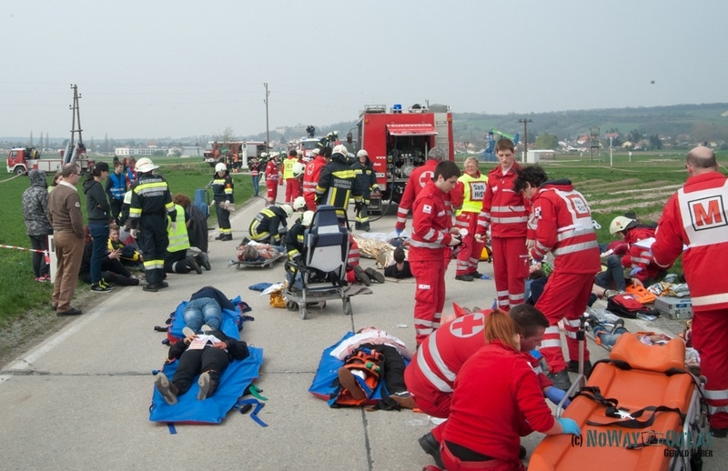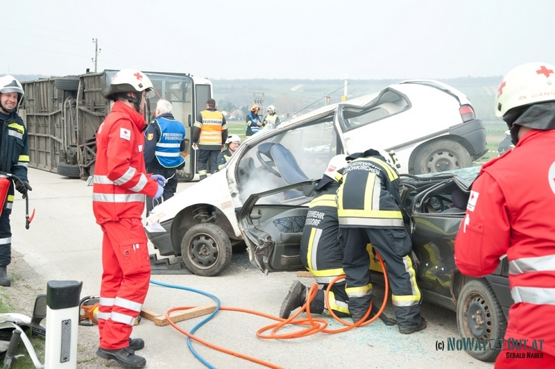 Neben den 5 Feuerwehren mit 10 Fahrzeugen und 65 Mann sowie den 13 Fahrzeuge mit 34 Mann des Roten Kreuzes war das Kriseninterventionsteam Gänsernsdorf anwesend. Um eine wirklichkeitsnahe Unfalldarstellung zu gewährleisten, wurden die insgesamt 45 Verletzten 3 Stunden vom Realistikteam in Kleinstarbeit vorbereitet.