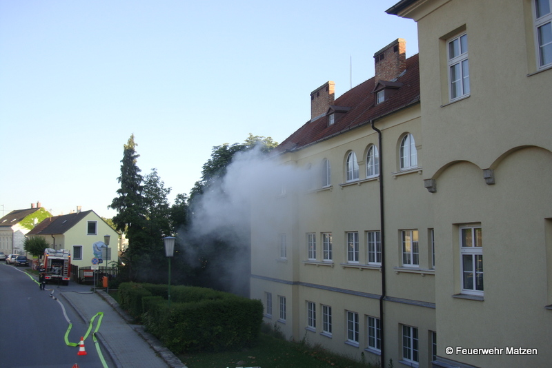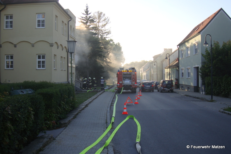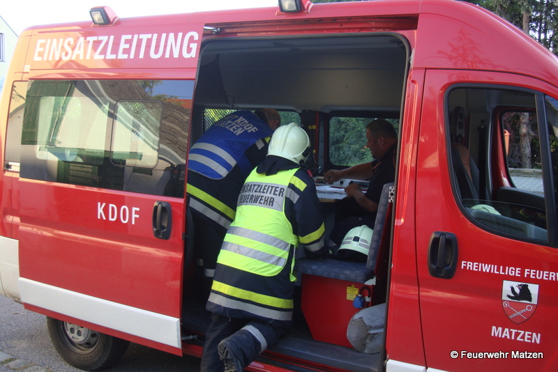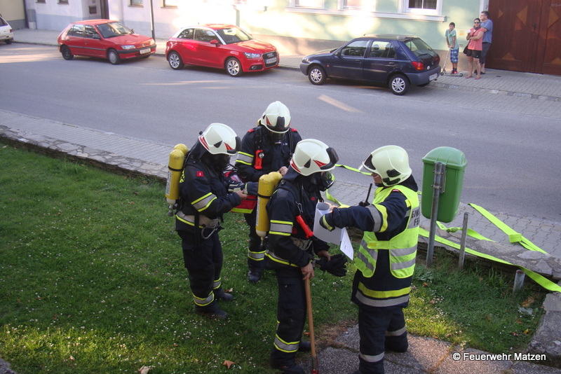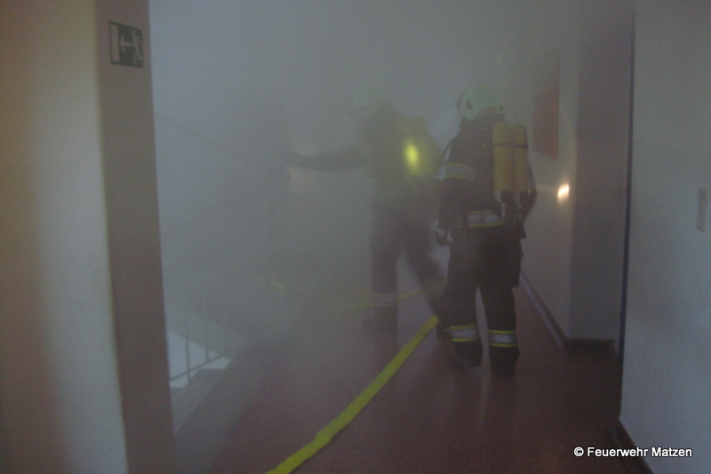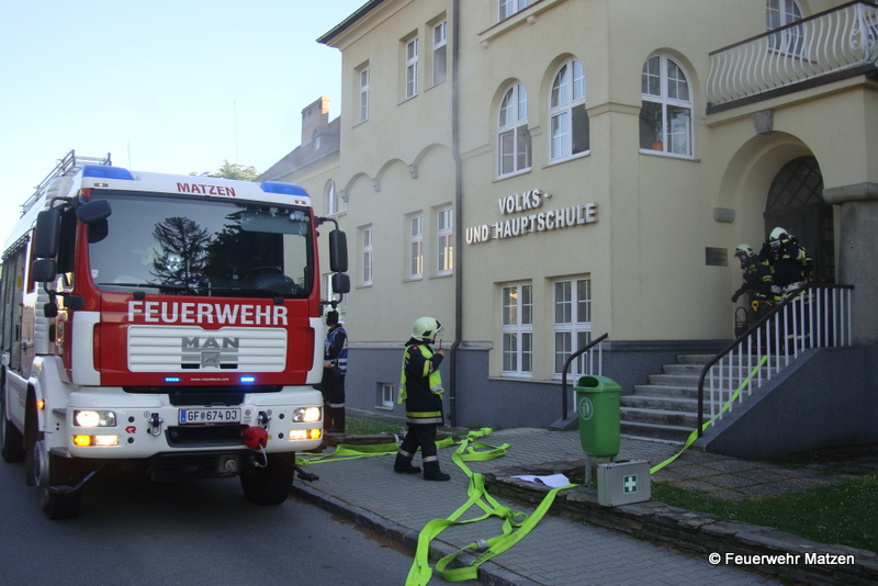 Übungsannahme war ein Brand in der Volkschule mit vermissten Personen. Übungsleiter LM Widhalm Klemens erteilte dem ersten Atemschutztrupp der ortsansässigen Feuerwehr Matzen nach der Erkundung den Befehl mit der Menschenrettung zu beginnen. Durch die Befragung des Anrufers bekamen die Einsatzkräfte die Information, dass sich noch 2 Personen in dem Gebäude befanden. Das kurze Zeit später eingetroffene Kommandofahrzeug baute unverzüglich die Übungsleitung auf, um den weiteren Feuerwehren ihre Befehle zu übergeben. Die Atemschutztrupps der Feuerwehren Raggendorf und Klein Harras stellten ebenfalls jeweils einen Atemschutztrupp zur Menschenrettung und der anschließenden Brandbekämpfung. Durch die Übungsleitung wurde die Feuerwehr Groß Schweinbarth mit dem Atemluftkompressor zur Wiederbefüllung der Atemluftflaschen alarmiert. Um den Atemschutztrupps bessere Sicht und dadurch ein gezieltes Vorgehen zu ermöglichen, wurde nach Kanalisierung des einströmenden Luftstromes der Druckbelüfter eingesetzt. Nachdem alle Personen gerettet und Brand aus gegeben wurde, konnte die Übung beendet werden. Nach der Übungsnachbesprechung rückten die Feuerwehren zu einer kleinen Stärkung ins Feuerwehrhaus ein.