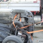 Das Übungsszenario bestand aus einem Verkehrsunfall mit zwei eingeklemmten Personen. Zwei Fahrzeuge verkeilten sich nach einer Kollision mit einem LKW.