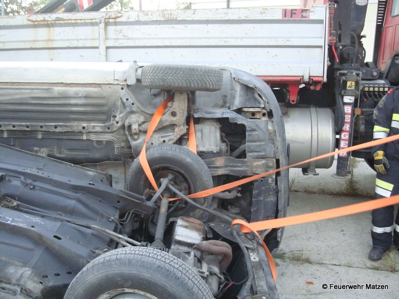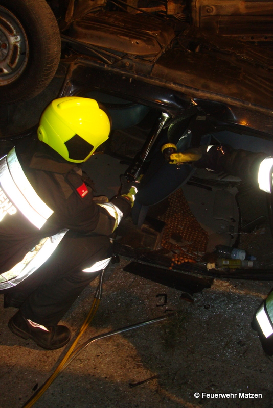 Vorbildlich wurden die beiden Verletzten aus den Fahrzeugen mittels hydr. Rettungsgerät befreit. Es wurde dabei die sogenannte Crash Rettung sowie eine schonende Methode angewandt.