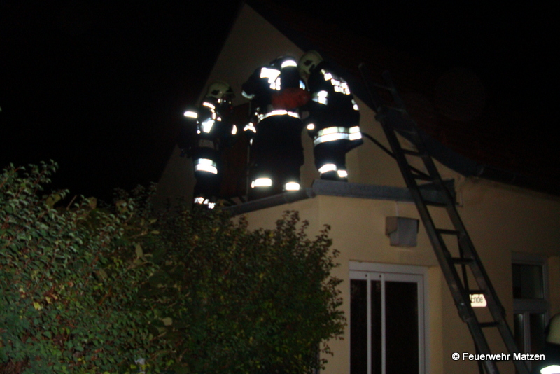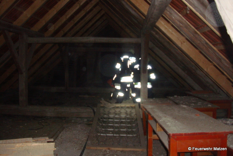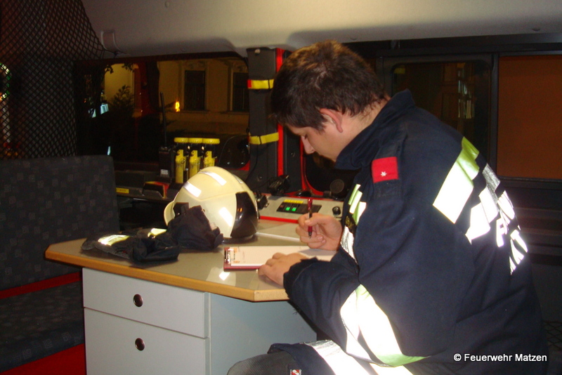 Umgehend machten sich die Matzner Florianijünger auf den Weg zur Übungsadresse. Dort angekommen bekam das Rüstlöschfahrzeug den Auftrag mit der Menschenrettung unter Atemschutz im Obergeschoß über eine Leiter zu beginnen und eine Wasserversorgung aufzubauen. Das Kommandofahrzeug richtete den Atemschutzsammelplatz ein.
