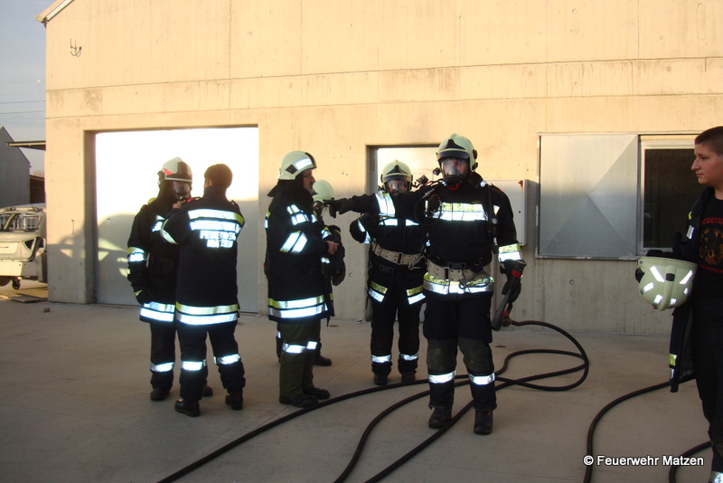 Am 19. 10. 2013 begaben sich 18 Kameraden der Feuerwehr Matzen in die Landesfeuerwehrschule nach Tulln. Von 8 -12 Uhr hatten die Atemschutzträger die Möglichkeit im Brandhaus den Ernstfall unter einsatznahen Bedingungen zu erproben. Jeder Atemschutzgeräteträger der Feuerwehr Matzen durfte eine der drei Positionen im Trupp besetzen und das richtige Vorgehen beim Innenangriff im Brandsimulator trainieren. Beobachtet wurden die Trupps von einer Führungskraft der Feuerwehr Matzen. Unterstützt wurden diese von einem Kameraden der Feuerwehr Raggendorf.