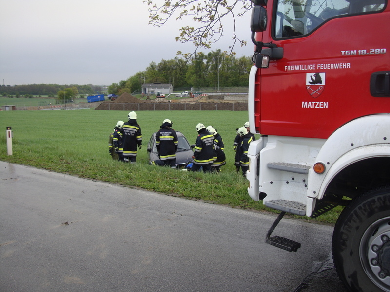 Am 15. April 2014 um 18:03 wurde die Feuerwehr Matzen erneut mittels Sirene/Pager uns SMS Alarm zu einer Fahrzeugbergung alarmiert. 18 Mann rückten mit 3 Fahrzeugen zum Einsatzort auf die L19 Richtung Prottes aus. Ein PKW kam aus bisher ungeklärter Ursache von der Fahrbahn und landete in Folge im Straßengraben. Nach der Absicherung der Unfallstelle wurde das Unfallauto wieder auf die Straße gezogen und für den Abtransport durch eine Fachfirma gesichert abgestellt. Nach der Reinigung der Verkehrsflächen konnten die Einsatzkräfte wieder einrücken.