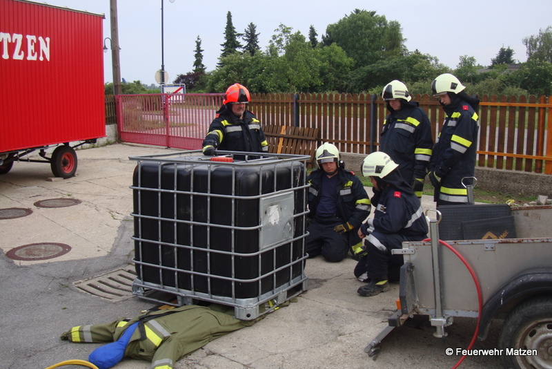 In der Monatsübung im Juni gab es zwei Stationen abzuarbeiten. Die Erste befasste sich mit der Schadstoffausrüstung der Feuerwehr Matzen, es wurde alle Gerätschaften die im Schadstoffeinsatz verwendet werden können kurz besprochen. In der zweiten Station mussten die Teilnehmer aktiv bei einer Menschenrettung mittels Hebekissen ihr Können auf die Probe stellen. Eine Person wurde unter einem vollen Container eingeklemmt. Nachdem die Vorgangsweise kurz unter den Teilnehmer abgesprochen wurde, konnte die Person rasch gerettet werden.