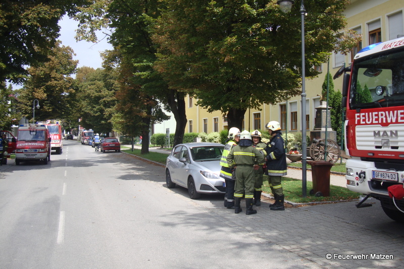 Erneut heulten die Sirenen in Matzen. Am 17. August 2014 wurde die Feuerwehr Matzen zeitgleich mit den Feuerwehren aus Raggendorf, Prottes und Groß Schweinbarth um Punkt 12:00 zu einem Küchenbrand im Jugendheim Matzen alarmiert. Binnen wenige Minuten rückten alle 4 Feuerwehren zum Einsatzort aus. Bereits während der Anfahrt rüstete sich ein Atemschutztrupp der Feuerwehr Matzen mit den Atemschutzgeräten aus. Glücklicherweise konnte unmittelbar nach Ankunft am Einsatzort von der Polizei Entwarnung gegeben werden. Nachdem eine Friteuse in der Küche des Kinder- und Jugendbetreuungszentrums vermutlich nach einer Verpuffung Feuer fing, konnte eine Betreuerin geistesgegenwärtig die Flammen mit einer Löschdecke ersticken und somit Schlimmeres verhindern. Nach der Kontrolle durch den Atemschutztrupp und den Einsatzleiter konnten alle Einsatzkräfet wieder abrücken.
