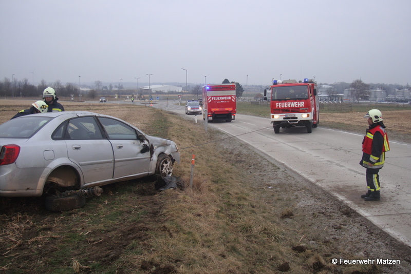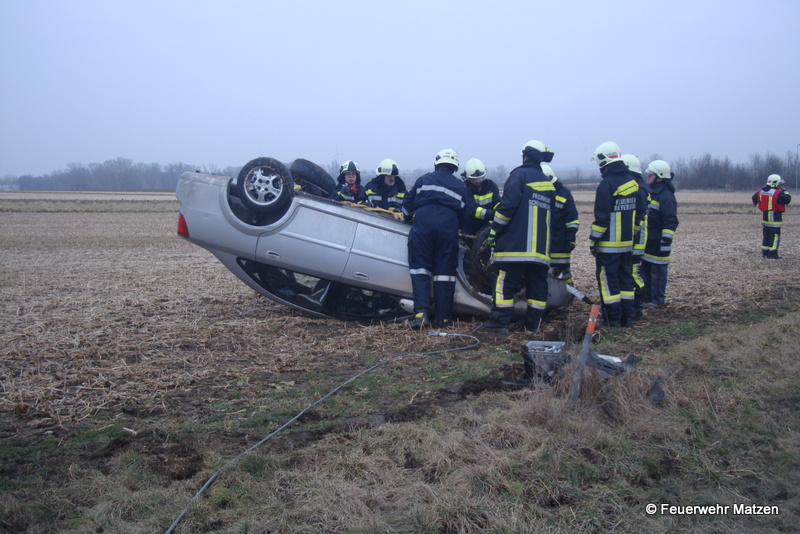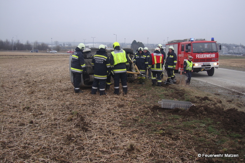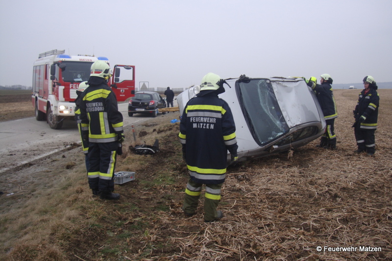 Am 18. Februar 2015 wurde die Feuerwehr Matzen um 15:33 Uhr mittels Sirene, SMS-Alarm und Pager zu einer Fahrzeugbergung auf die L3159 Richtung Gänserndorf alarmiert. Ein Fahrzeug kam in einer Linkskurve von der Fahrbahn, überschlug sich in einem angrenzendem Feld und kam in Folge am Dach zum Stillstand. Da sich der Unfallort im Einsatzbegiet der Feuerwehr Schönkirchen-Reyersdorf befand, wurde diese ebenfalls alarmiert.