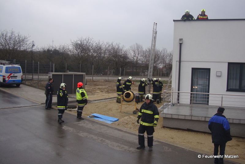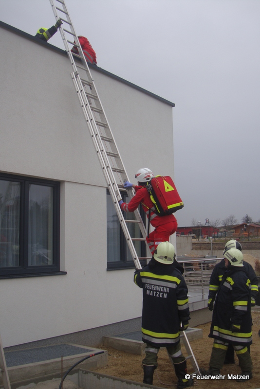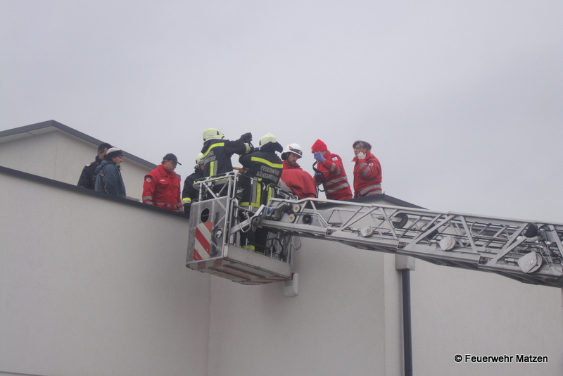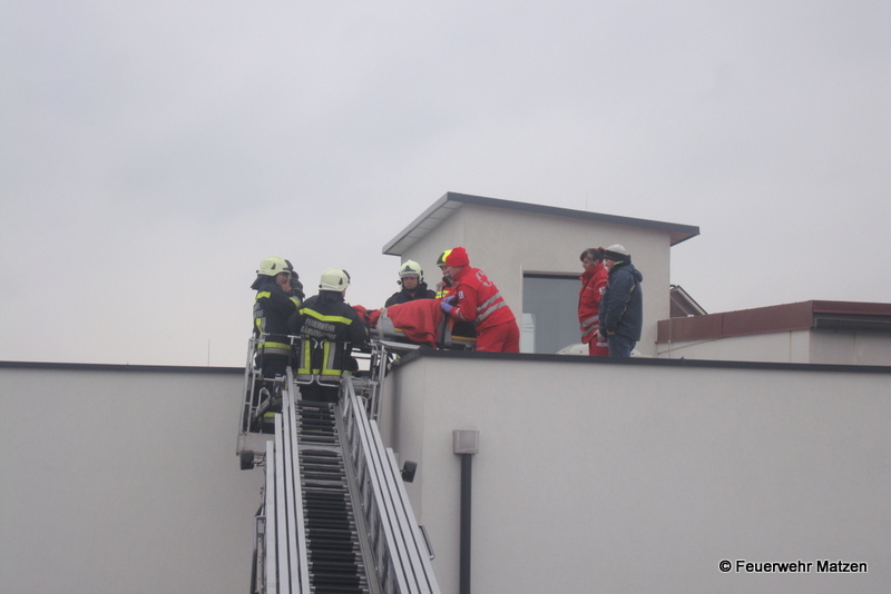 Die Feuerwehr Matzen wurde am 13. März 2015 um 08:27 zur Unterstützung des Roten Kreuzes alarmiert. Unverzüglich rückten 14 mann mit 2 Fahrzeugen zur Einsatzadresse auf der Gänserndorferstraße in Matzen aus. Ein Arbeiter stürzte am Dach und verletzte sich schwer. Nach kurzer Erkundung wurde die Drehleiter Gänserndorf nachalarmiert, um eine schonende Rettung des Verletzten durchführen zu können. Nach einer Schmerztherapie durch das nachkommende Notarztteam, wurde der Verletzte mittels Drehleiter vom Dach transportiert. Zur weiteren Behandlung wurde der Patient durch den NAW Gänserndorf ins Krankenhaus verbracht. Nach rund einer Stunde konnten die Einsatzkräfte abrücken und die Einsatzbereitschaft wieder herstellen.