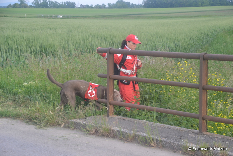 Unverzüglich wurde die nähere Umgebung abgesucht und die Suchhunde des RK Gänserndorf, welche in Deutsch Wagram stationiert sind, alarmiert. Da der vermisste Bub nicht gefunden wurde, startete ein Suchhund die Personensuche. Er konnte den leicht verletzten Jungen in einem Waldstück finden welches rund einenhalb Kilometer von der Unfallstelle entfernt ist. Dieser wurde gemeinsam von der Feuerwehr Kleinharras, welche die Suchhunde unterstützen, und dem RK Gänserndorf gerettet.