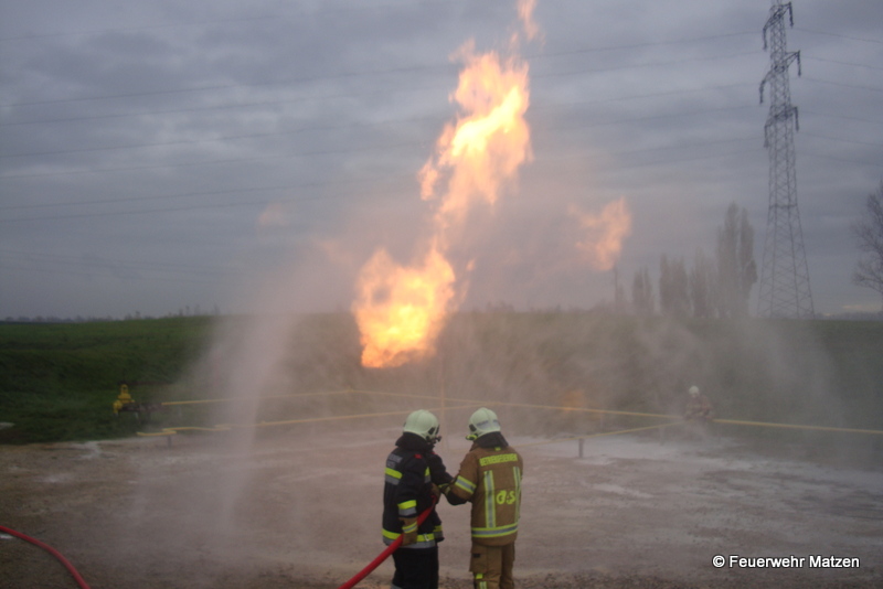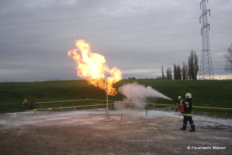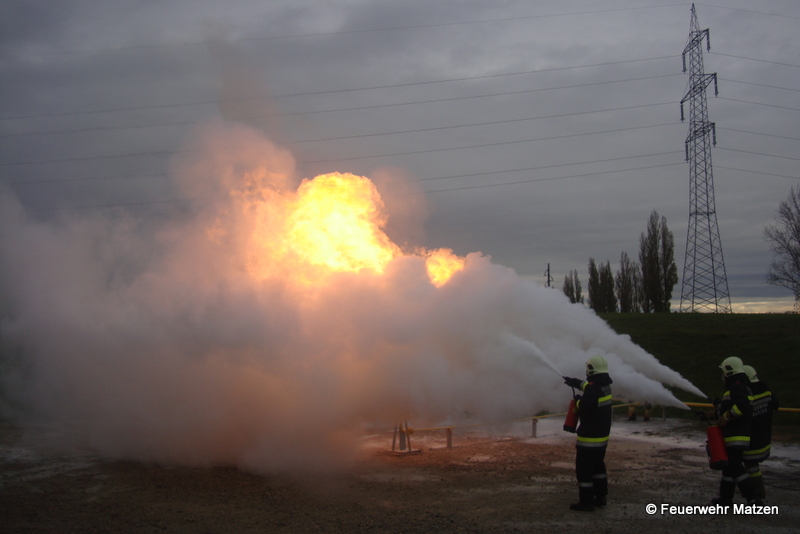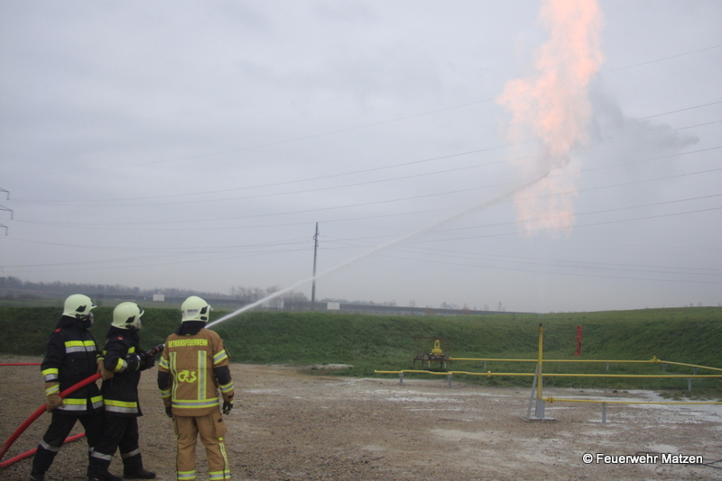Am 7. November hatte die Feuerwehr Matzen die Möglichkeit am Übunggelände der Betriebsfeuerwehr OMV Gänserndorf eine Gasbrandbekämpfung durchzuführen. Unter Anleitung eines Ausbilders der BTF konnten verschieden Szenarien abgearbeitet werden.