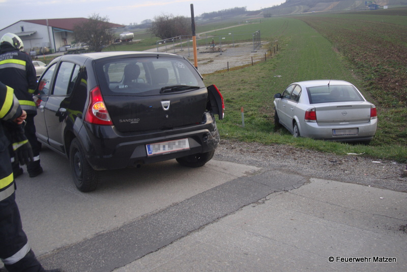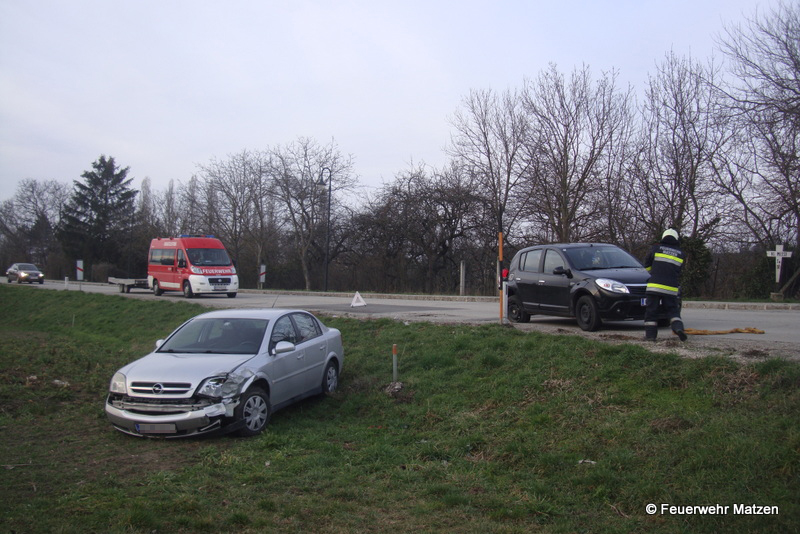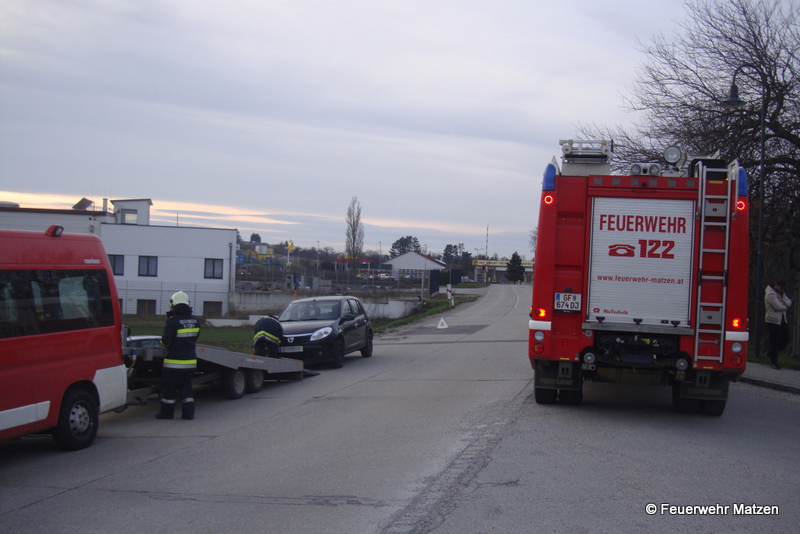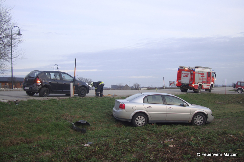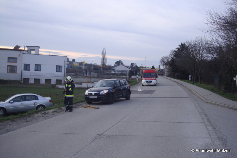 Nach einem Auffahrunfall kurz nach der Bahnübersetzung blockierte ein fahrunfähiger PKW den Verkehr, der zweite PKW wurde durch die Kollision in den Graben geschleudert. Nach der Absicherung der Einsatzstelle wurde nach Absprache mit der Polizei Matzen ein Fahrzeug abtransportiert und die Straße gereinigt. Für das zweite Unfallwrack wurde durch den Fahrzeuglenker ein Abschleppunternehmen beauftragt. Nach rund 35 Minuten konnten die Florinijünger wieder einrücken und die Einsatzbereitschaft herstellen.