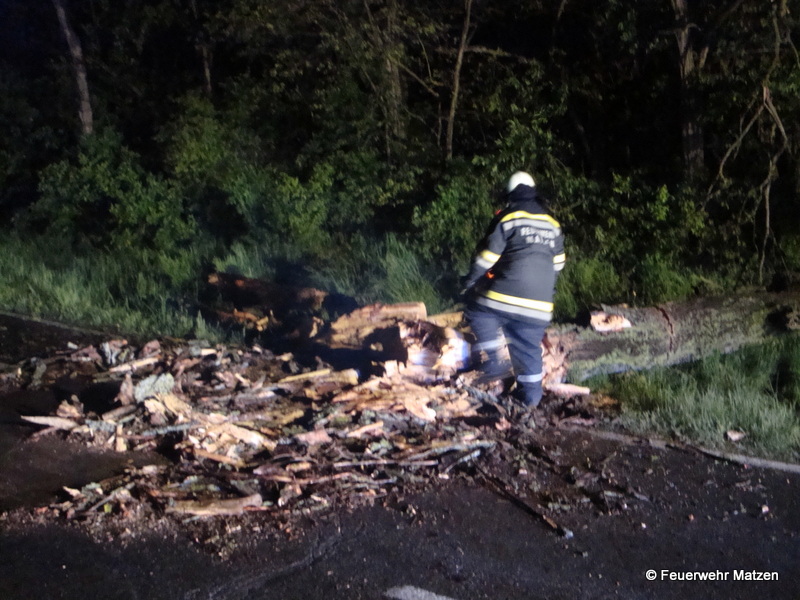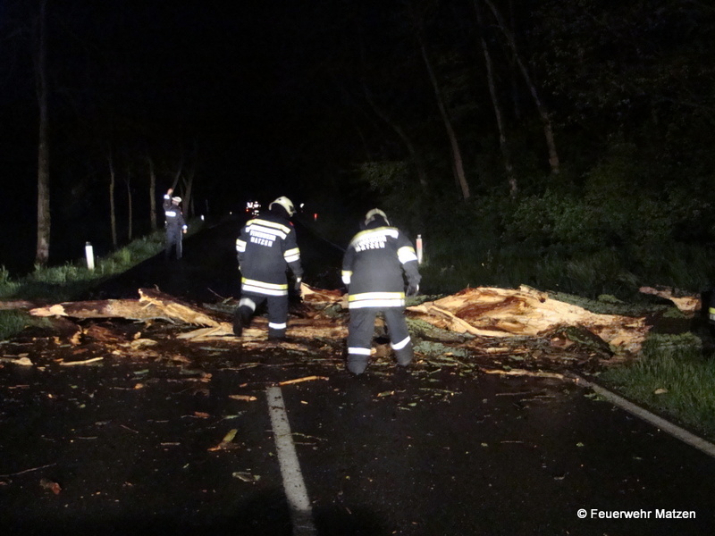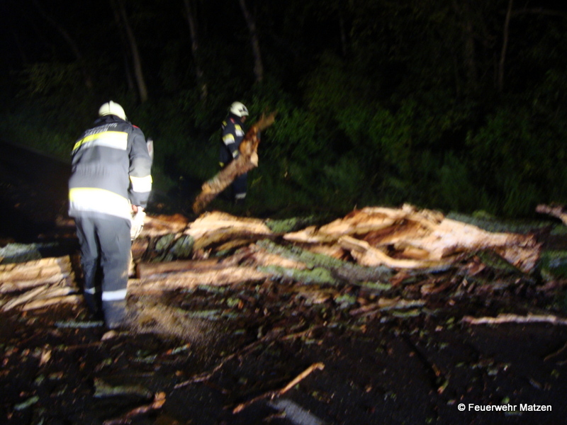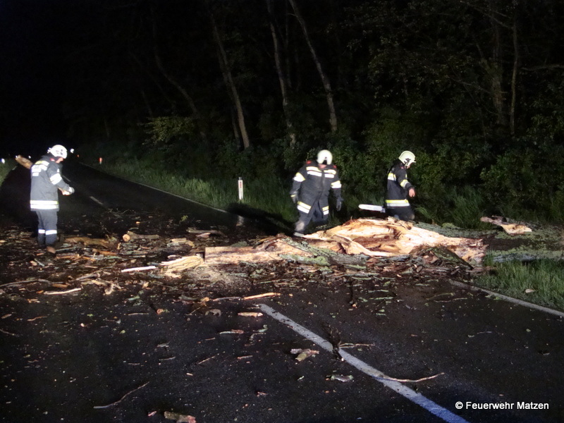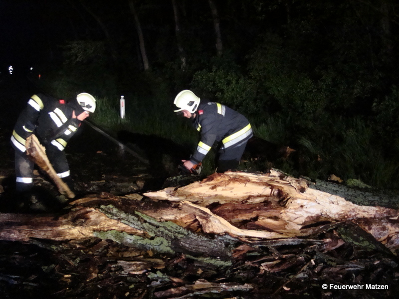 In der Nacht vom 23. auf den 24. April 2016 wurden die Matzner Florianijünger um 4:02 Uhr von der Sirene aus dem Schlaf gerissen. Auf der L 18 Richtung Reyersdorf meldete die Polizei der Alarmzentrale einen Sturmschaden. Kurz nach der Alarmierung rückten 8 Kameraden mit 2 Fahrzeugen zum Einsatzort aus. Ein Baum stürzte quer auf die Fahrbahn und blockierte diese. Nach der Zerkleinerung des Stammes und der Reinigung der Fahrbahn konnten die Einsatzkräfte nach rund einer Stunde abrücken und die Einsatzbereitschaft wieder herstellen.