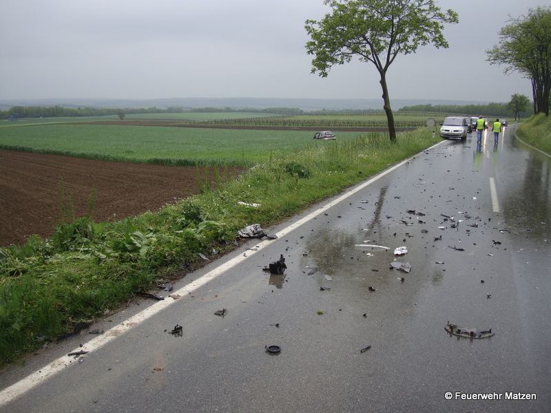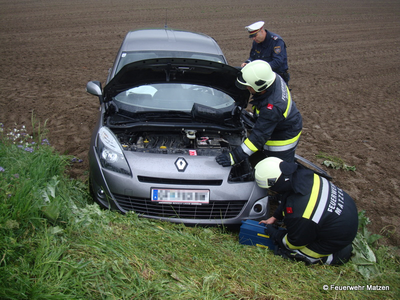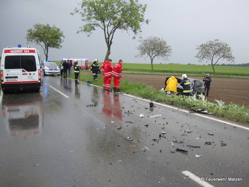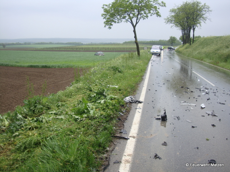 Unmittelbar nach dem Einrücken nach dem letzten Einsatz wurde die Feuerwehr Matzen telefonisch über einen erneuten Verkehrsunfall informiert. Aufgrund der lückenhaften Informationen rückten zwei Kameraden mit dem Kommandofahrzeug zur Unglücksstelle auf der L19 Richtung Groß Schweinbarth aus. Kurz nach der Kreuzung Richtung Raggendorf kollidierten zwei Fahrzeuge und landeten in Folge im angrenzenden Feld. Glücklicherweise wurden auch bei diesem Verkehrsunfall die beiden PKW-Lenker nur leicht verletzt. Unverzüglich nach der Erkundung wurde die Einsatzstelle abgesichert und die zuständige Feuerwehr Raggendorf alarmiert. Gleichzeitig wurden die Kameraden der Matzner Feuerwehr über den Folgeeinsatz informiert. Die gleichzeitig eintreffenden Feuerwehrfahrzeuge bargen die Unfallwracks und verbrachten diese. Nach der Fahrzeugbergung wurden noch durch die Feuerwehr Raggendorf die Verkehrsflächen gereinigt, bevor die Einsatzkräfte wieder einrücken und ihre Einsatzbereitschaft herstellen konnten.