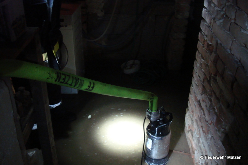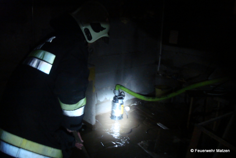 Am 7. August 2016 wurde die Feuerwehr Matzen um 01:58 mittels Sirene, SMS-Alarm und Pager zu einem Wassergebrechen auf der Schweinbartherstraße alarmiert. Unverzüglich rückten 12 Mann mit 3 Fahrzeugen aus. An der Einsatzstelle angekommen stand der Keller bereits 10 Zentimeter unter Wasser. Da die Strom- und Wasserversorgung bereits vom Hausbesitzer abgedreht wurden, konnte umgehend mit den Auspumparbeiten begonnen werden. Nach rund einer halben Stunde konnten die Einsatzkräfte wieder abrücken und die Einsatzbereitschaft herstellen.
