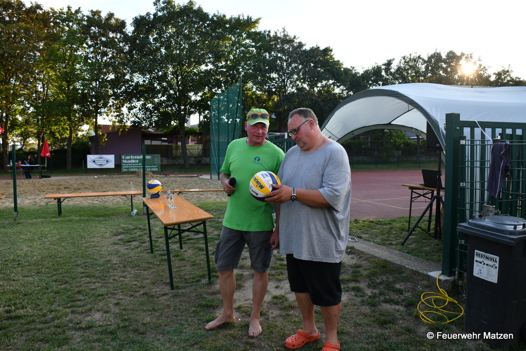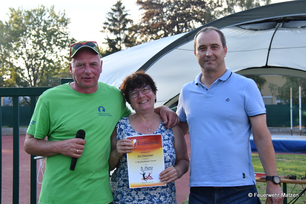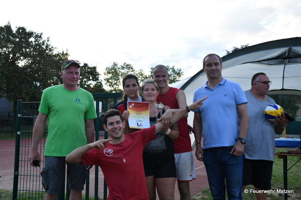 Das 2. Feuerwehr-Beachvolleyallturnier startete am 14. Juli 2018 mit der Auslosung der 12 Teams um 09:30 Uhr. Viele bekannte Gesichter kämpften um den Turniersieg, den sich am Schluss die Mannschaft „Beachbugs“ sicherte. Die Feuerwehrkameraden sorgten den ganzen Tag über für Speis und Trank. Die ersten drei Teams wurden mit einem Pokal, gesponsert von der Firma „Aquaspring“ belohnt. Ein Dank gilt auch der Firma „Wograin“ für die Spende der Matchbälle. Die Kameraden der Feuerwehr Matzen bedanken sich bei allen Spielern sowie allen Gästen.