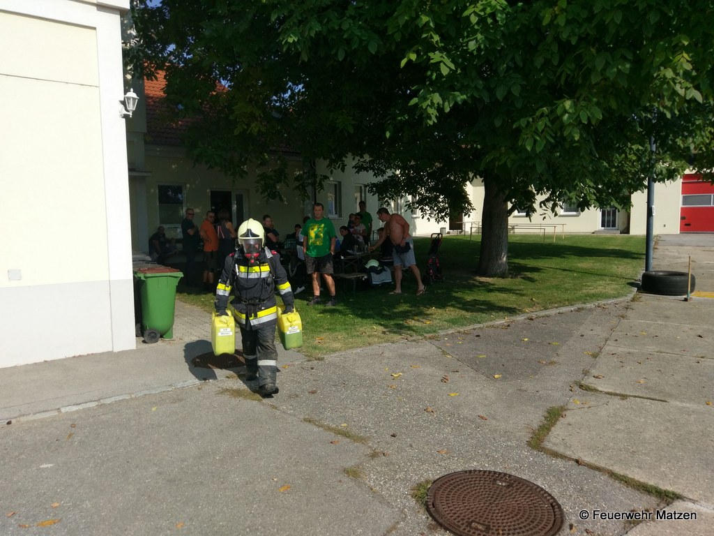 Am 15. September 2018 wurde bei der Feuerwehr Matzen die Leistungsüberprüfung für Atemschutzgeräteträger abgehalten. Im „Finnentest“ müssen 5 Stationen in einer vorgeschriebenen Zeit bewältigt werden. Gestartet wird mit 2 Mal 100 Meter gehen, davon einmal mit 2 Kanister. Danach müssen 90 Stiegen bewältigt werden. Nachdem ein LKW Reifen über eine Strecke von 3 Metern mit einem Vorschlaghammer bewegt werden. Im Anschluss müssen 3 Hindernisse dreimal untergekrochen und überstiegen werden. Als letzte Station muss ein C-Schlauch einfach gerollt werden. Natürlich werden alle Stationen mit vollständiger Einsatzbekleidung und Atemschutzgerät absolviert. Alle Atemschutzgeräteträger der Feuerwehr Matzen konnten den Leistungstest erfolgreich abschließen. Im Anschluss gab es eine Stärkung für die erschöpften Mitglieder.