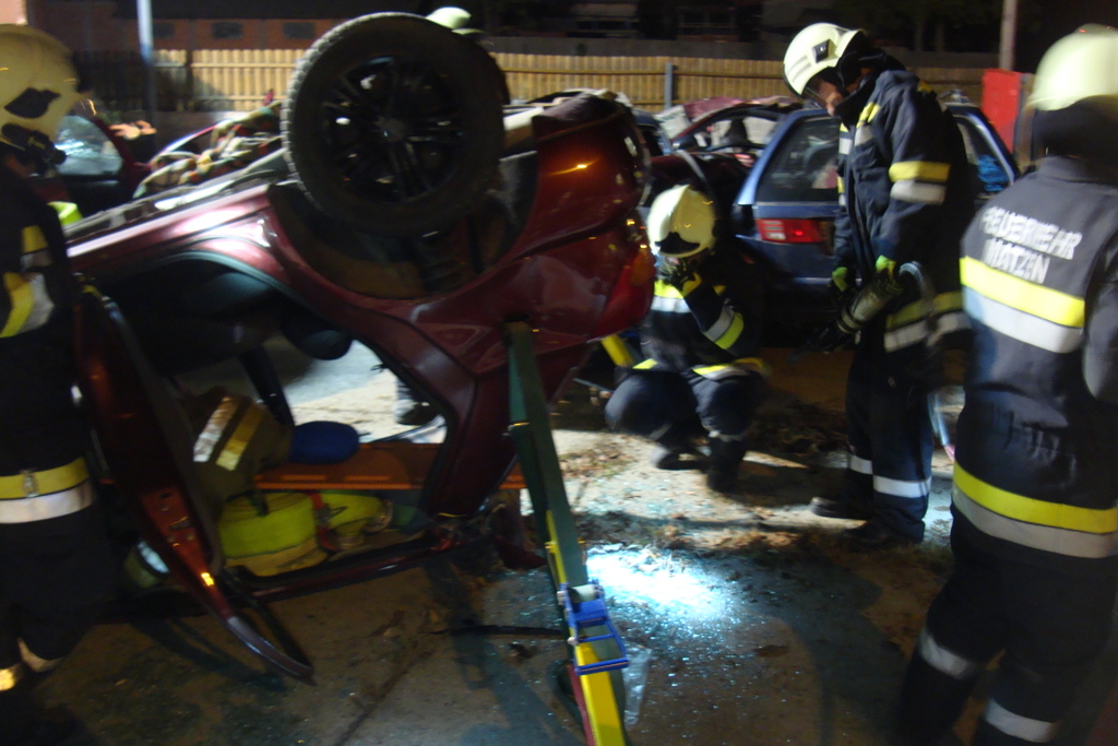Die monatliche Übung im September fand am 17. 09. 2018 statt. Thema war die technische Menschenrettung unter vornahme des hydraulischen Rettungsgerätes. In zwei Szenarien wurden alle Handgriffe geschult. HBI Manfred Neubauer und OLM Gnadenberger Markus erläuterten die verschiedenen Techniken bei der Menschenrettung. Beim ersten Fahrzeug wurden alle „Basics“ (von der Absicherung des Fahrzeuges über die verschiedenen Möglichkeiten der einzelnen Geräte) durchgesprochen. Zum Abschluss wurde das Vorgehen beim „Crossramming“, so wird das Platzschaffen für den Patienten nach einem Seitenaufprall genannt, den Teilnehmern nähergebracht. Beim zweiten Pkw wurde eine nicht so gängige Variante der achsengerechten Rettung eines Verunfallten in Dachlage erklärt. Nachdem der Verletzte in Bauchlage auf einem Spineboard positioniert und gesichert wird, löst man, nachdem das Fahrzeug im Heckbereich durch das Haltesystem „StabFast“ gesichert wird, das komplette Dach und zieht es mit dem Verletzte unter dem Wrack hervor. Nach rund 2 Stunden konnten beide Szenarien erfolgreich beendet werden.