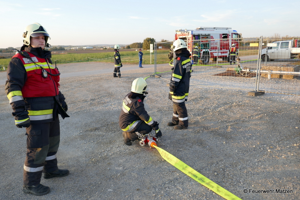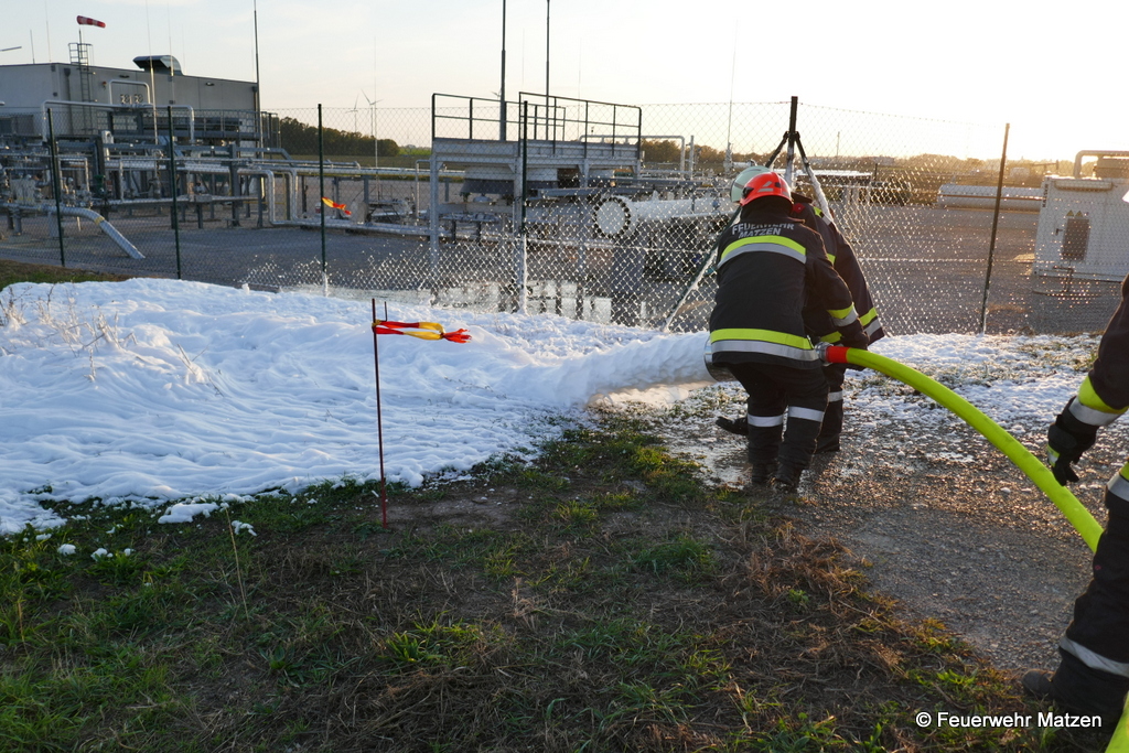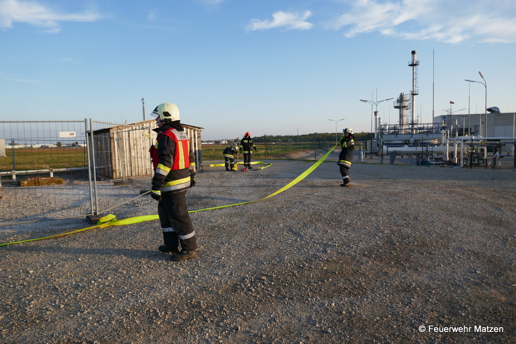 Am 15. Oktober 2019 fand um 19:00 die jährliche Sauergasübung der OMV statt. Übungsannahme war ein Gasaustritt auf der Schieberstation Deutsch Wagram mit verletzten sowie vermissten Personen. Bei einem Störfall kommt es zu einem sogenannten „Shut Down“. Hierbei wird der betroffene Abschnitt der Sauergasleitung druckfrei gemacht, indem das Sauergas auf den Anlagen „Abgefackelt“ wird. Bei diesem „Shut Down“ werden die für die Anlage zugewiesenen Feuerwehren laut Sauergasalarmplan alarmiert und stellen den Brandschutz rund um die Anlage, da es beim abfackeln des Sauergases durch Funkenflug zu Sekundärbränden kommen könnte. Die Feuerwehr Matzen ist für die Station ST62 kurz vor Gänserndorf zuständig. Nach der Alarmierung zur Sauergasübung rückten 13 Kameraden der Feuerwehr Matzen mit 2 Fahrzeugen zu ihrer Station aus. Annahme war ein Sekundärbrand neben der Anlage, der mittels Schaum gelöscht werden musste. Binnen kürzester Zeit konnte der markierte Bereich mit Löschschaum bedeckt werden. Nachdem alle Aufgaben abgearbeitet wurden fanden sich alle eingesetzten Einsatzkräfte im Gasthaus Sommer in Auersthal zur Nachbesprechung ein.