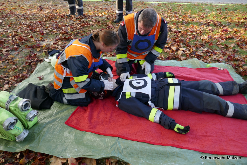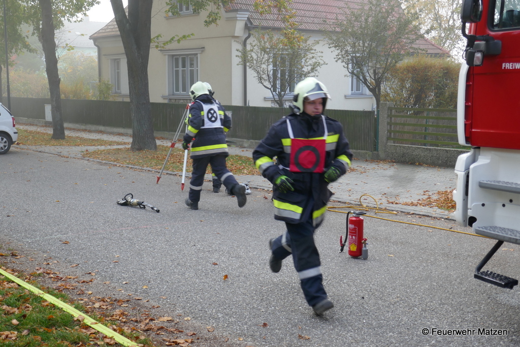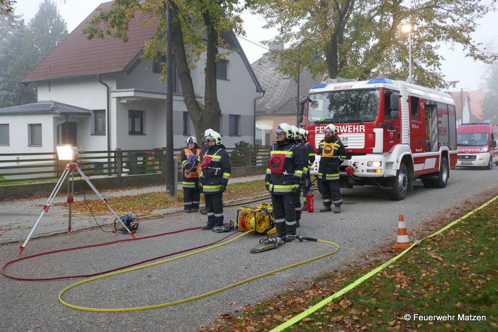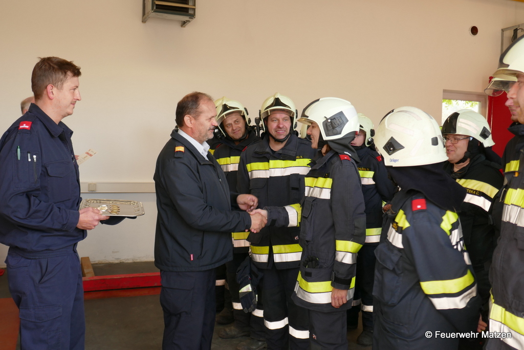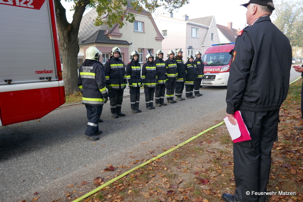 Nach über zweimonatiger Vorbereitungszeit traten 17 Kameraden der Freiwilligen Feuerwehr Matzen am Vormittag des 26. Oktobers 2019 zur Ausbildungsprüfung in Bronze und Gold an. Mitte August starteten die Florianijünger mit der ersten Vorbereitungseinheit. Die Ausbildungsprüfung Technischer Einsatz unterstützt die Ausbildung der Feuerwehrmitglieder und ist deshalb eine wichtige Voraussetzung für ein reibungsloses und zielführendes Zusammenarbeiten bei technischen Einsätzen, wobei kein Wert auf das Erreichen von „Bestzeiten“ gelegt wird, sondern das die Teilnehmer eine sichere und exakte Leistung mit dem eigenem Fahrzeug und Gerät erbringen um den Anforderungen im Einsatz entsprechen zu können. Bei dieser Prüfung wird ein Verkehrsunfall mit eingeklemmter Person simuliert, wobei die Mannschaft aus 10 Personen durch sicheres Arbeiten die Menschenrettung durchführt. Dabei muss die Unfallstelle abgesichert, der Brandschutz und Beleuchtung aufgebaut und die Rettung mittels Spreitzer und Schere in einem vorgegebenem Zeitfenster durchgeführt werden. Zusätzlich müssen definierte Gerätschaften bei geschlossenen Rollos im Fahrzeug gefunden und erklärt werden. Neben den „technischen“ Herausforderungen müssen die Teilnehmer ihr Können auch in der Ersten Hilfe beweisen. Während die Positionen in der Stufe Bronze fix vergeben sind, so werden in der Stufe Gold bis auf die beiden Maschinisten, die untereinander gelost werden, alle restlichen Positionen vor Beginn gezogen. In der Stufe Gold müssen alle Teilnehmer außerdem 20 Fragen aus einem Fragenkatalog richtig beantworten. Unter den strengen Augen der Prüfer konnten die beiden Gruppen die Ausbildungsprüfung mit Erfolg in der vorgegebenen Zeit absolvieren. Das Prüferteam, sowie Feuerwehrkommandant HBI Neubauer Manfred gratulierten den Kameraden für die positiv abgelegten Prüfungen und die gute Zusammenarbeit. Im Anschluss durften die stolzen Florianijünger ihre Abzeichen von Bezirksfeuerwehrkommandant-Stellvertreter BR Jobst Robert entgegen nehmen.