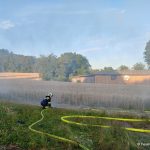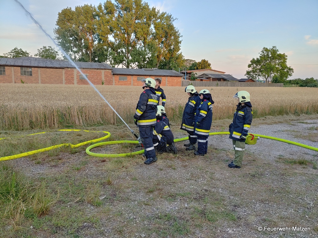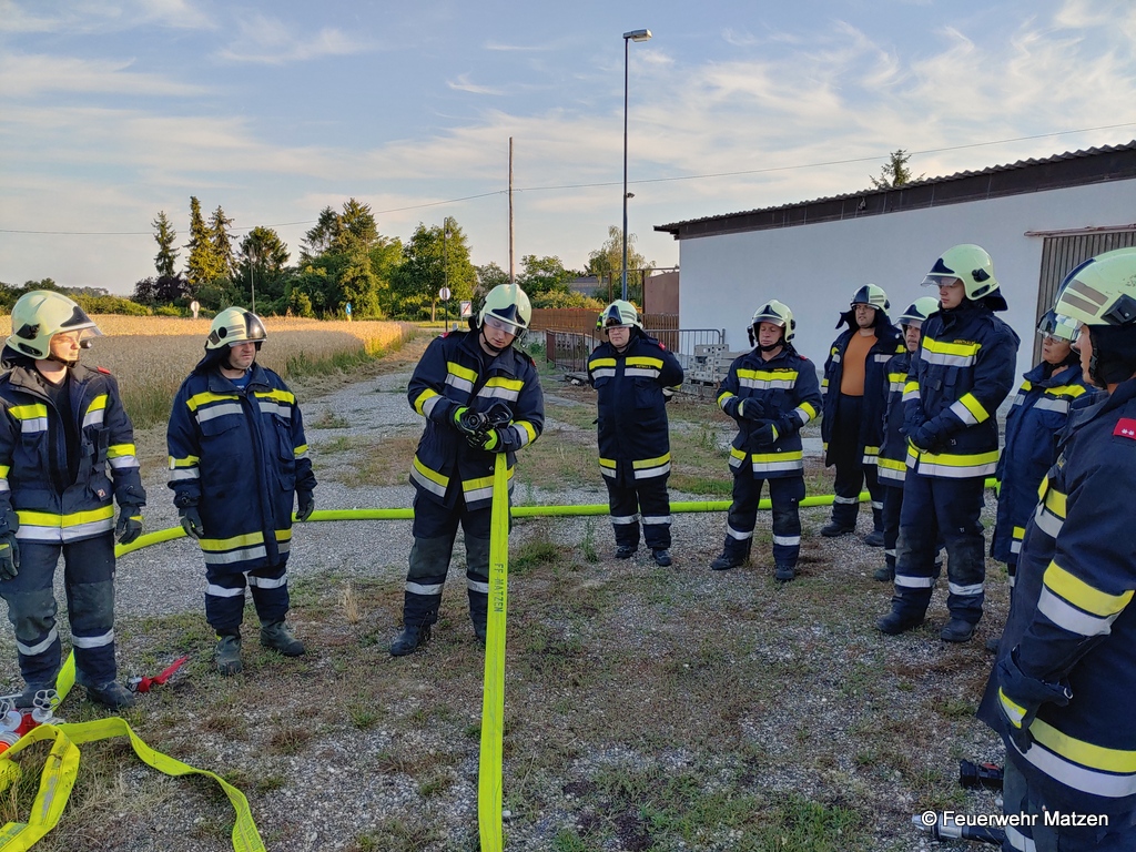 In der Monatsübung im Juli wurden die wasserführenden Armaturen besprochen und jeder Teilnehmer konnte jedes Gerät bedienen. Neben C- und B-Rohr, wurden das Hydroschild sowie ein selbstgebauter Wasserwerfer trainiert. Auch unser mobiler Wasserwerfer kam zum Einsatz. Um die Schulungseinheit etwas aufzulockern, konnte das richtige Verhalten im Innenangriff bei einem Flash-Over vertieft werden.